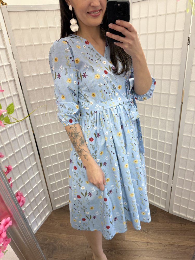 Popelínové zavinovacie šaty "Celeste" - tmavomodré kvety